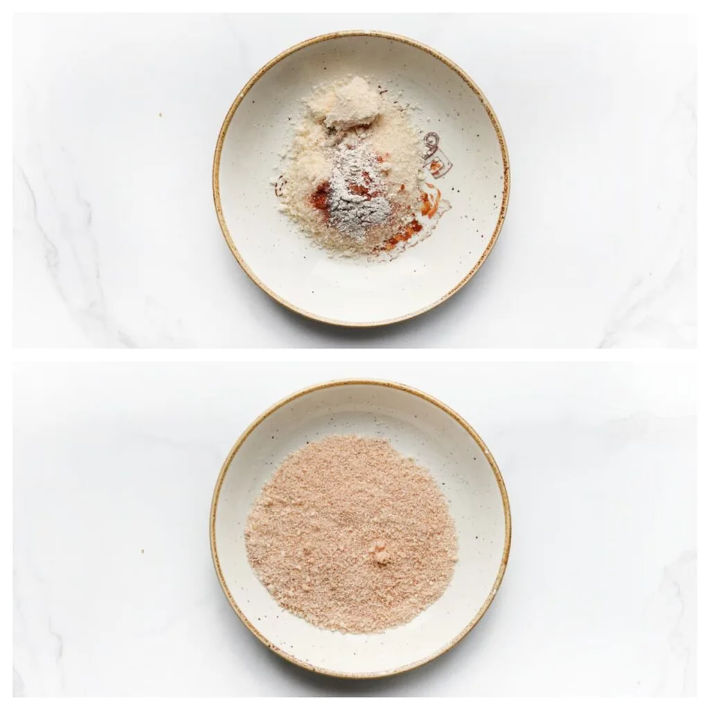 In a bowl, combine the Parmesan cheese, cayenne powder, onion powder, and black pepper. Mix well and set aside.