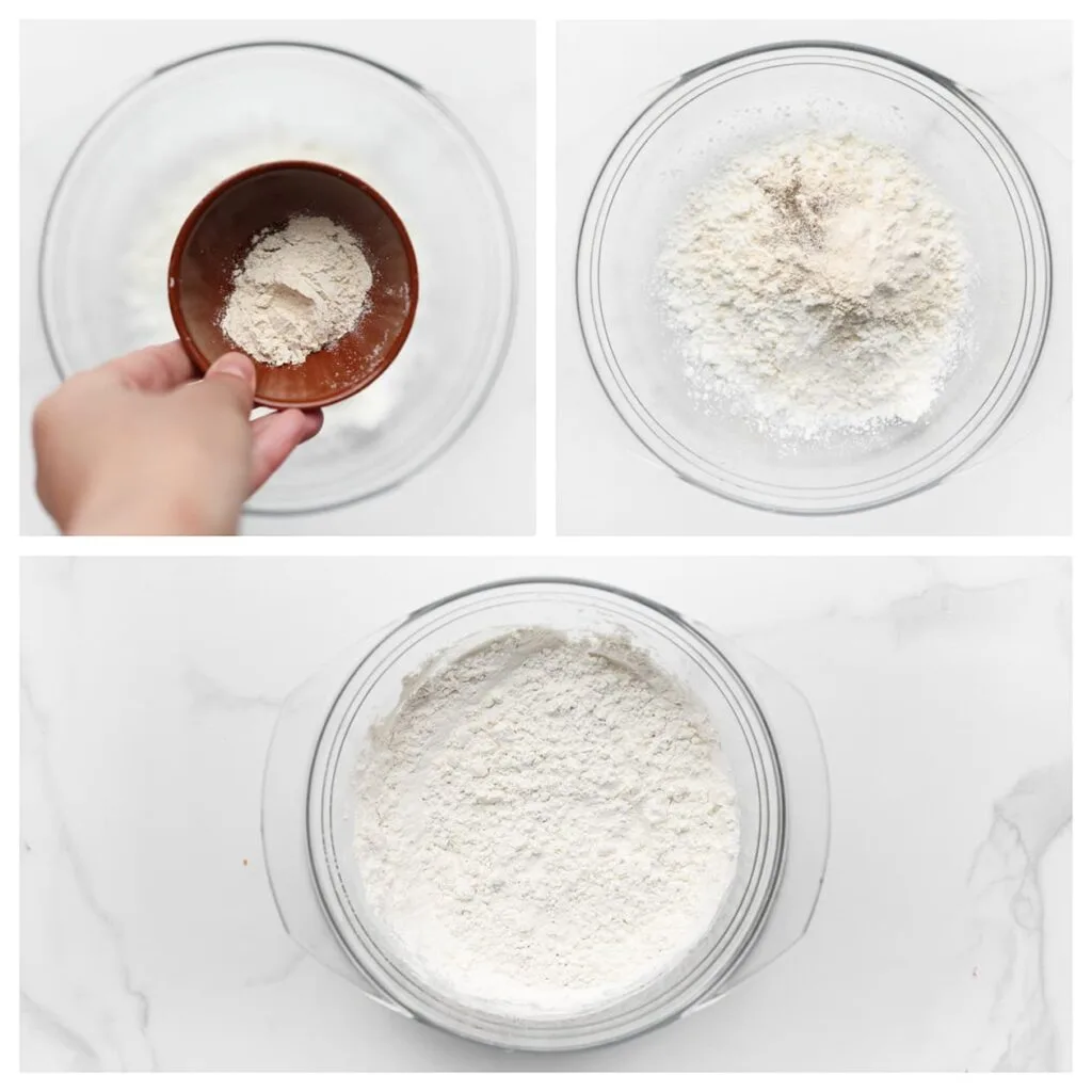 | In a bowl, combine the cornstarch, salt, black pepper, and onion powder. Mix well. |